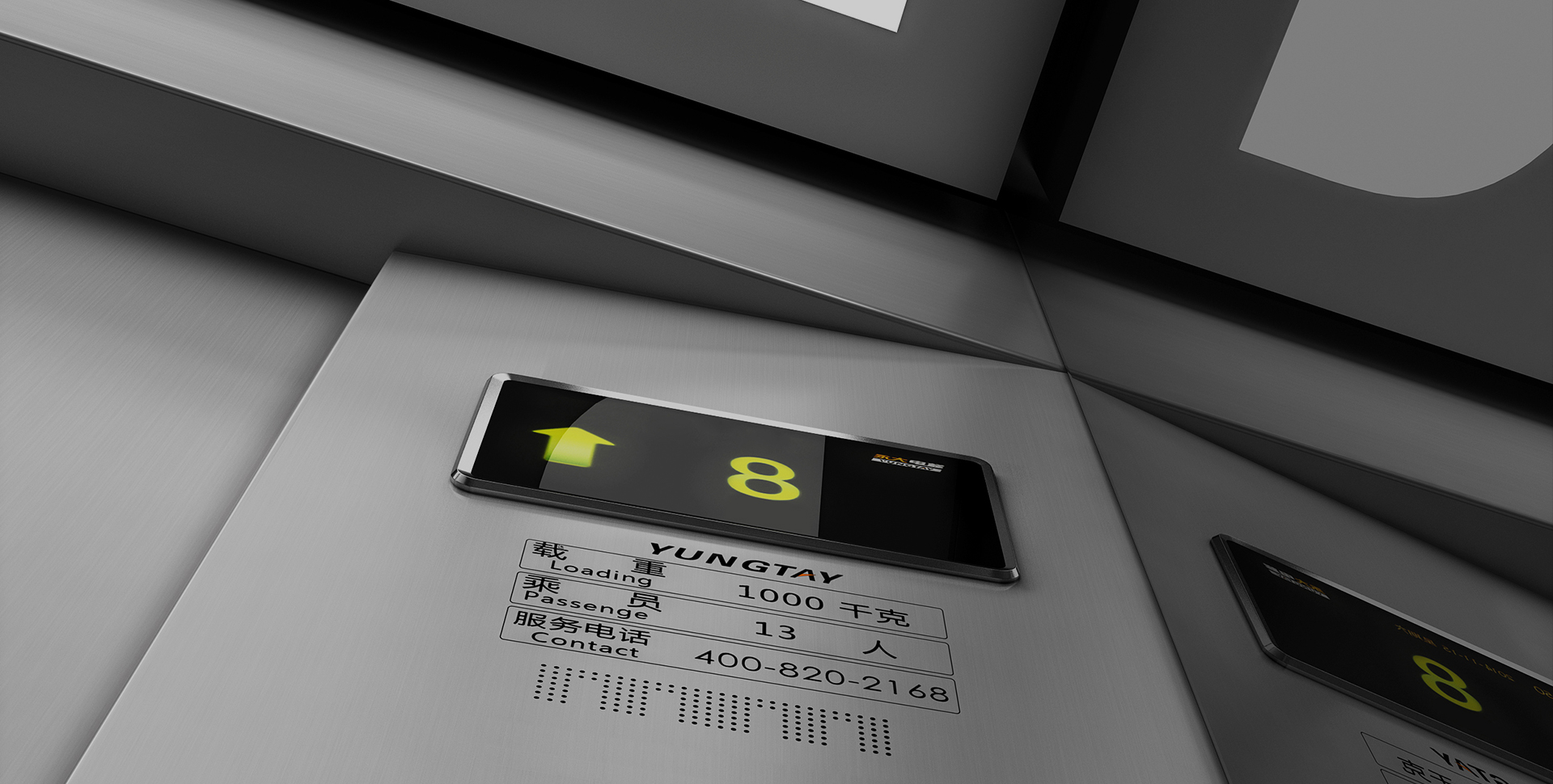 超高的轎廂凈高,乘坐空間更大、更舒適,彰顯現代商務氣息。